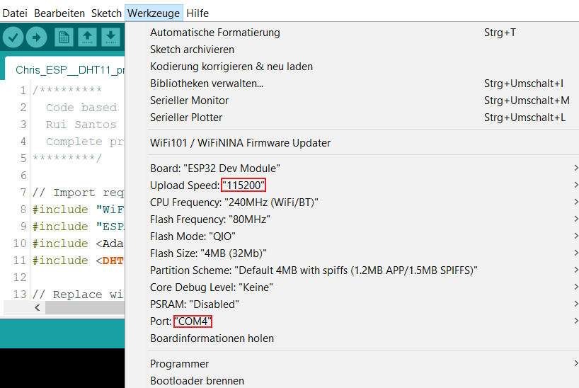 After the code for each sensor was written and also connecting worked mostly fine for the Arduino board, the change to the ESP32 had difficulties.