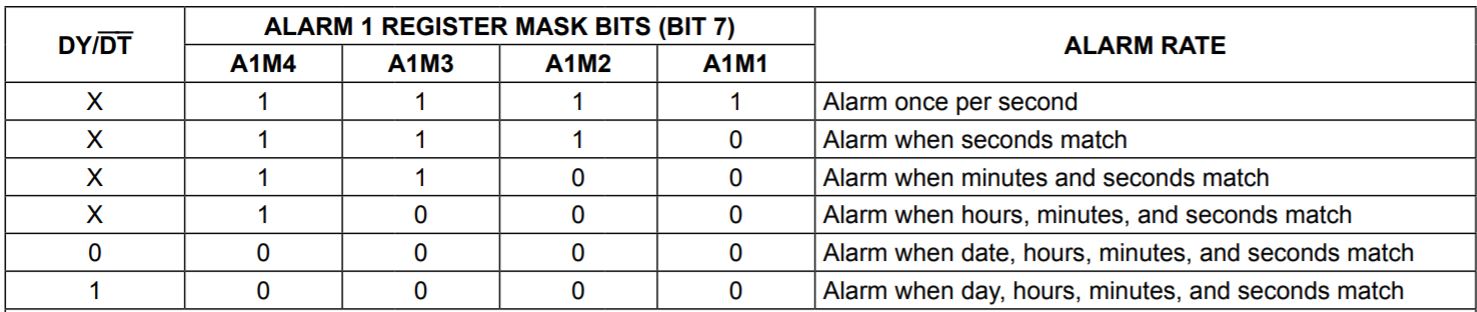 Table 2 Alarm Mask Bits (Source: DS3231 Datasheet p.12)
