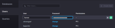 Allow the farmer user full acess to InfluxDB by typing in username and password and give all permissions