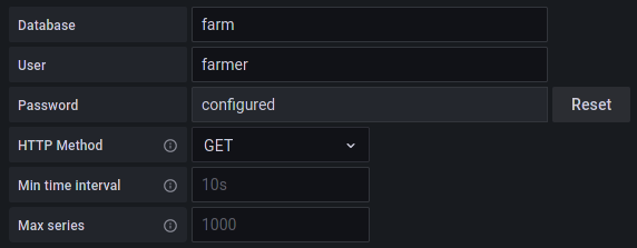 Open Grafana dashboard and add the newly added InfluxDB “farm” as new source.