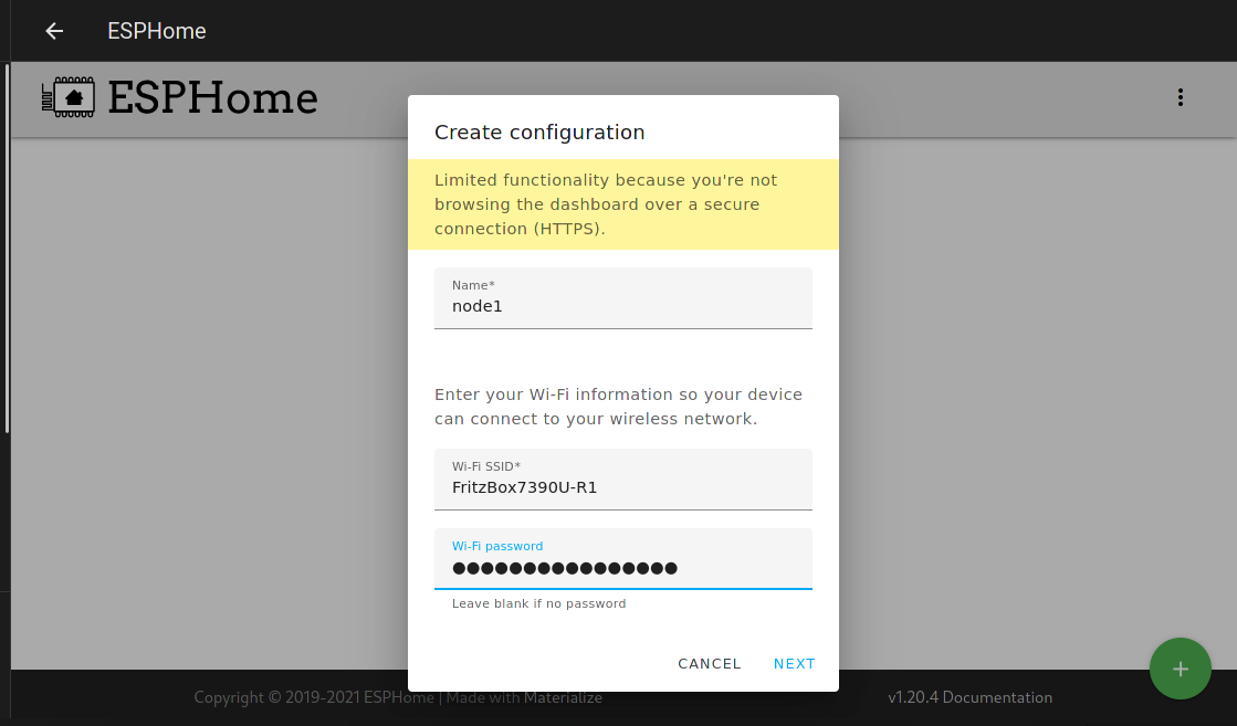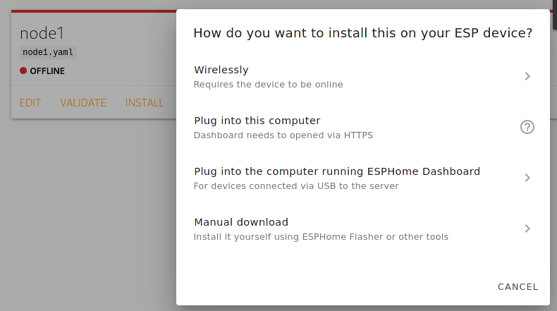 Open ESPHome from the sidecard and create a new ESPHome Node