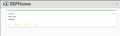When the process was sucessfull, the ESP32 will connect to the wifi and the ESPHome integration and will show as online. From there on easy OverTheAir updates can be sent to this node.