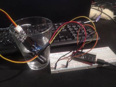 Soil moisture sensor in a glass of water and removing it:
