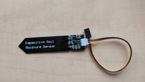 The Capacitive Soil Moisture Sensor Module is a low-power sensor that measures the difference in capacitance caused by the changes in the dielectric that is formed by the soil and the water. The sensor’s capacitance is measured by the use of a 555 based circuit (that is, it provides a single pulses over a long time) that produces a voltage proportional to the capacitor inserted in the soil. This voltage is after that measured by means of an Analog to Digital Converter which produces a number that we can then interpret as soil moisture. Due to the capacitive probe, corrosion is minimised and there is no electrical current flowing in the soil and no electrolysis is induced. It consists of 3 connectors; namely Ground, Voltage common connecter, VCC (3.3V – 5.5V DC) and the analog output that is usually connected to the analog input in the microcontroller.