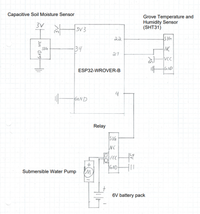 At first, we tried using the DHT 11 and DHT 22 sensors for the measurement of the two parameters namely temperature and humidity which unfortunately did not give us any results and it seemed to be unreliable. We then switched to the Grove Temperature & Humidity sensor (SHT31) which gave us accurate results for the measurement of these two parameters. We also wanted to use the ultrasonic sensor to measure the water level but it required a voltage of 5V which is not supported by the ESP32 as it has a maximum of 3.3 V. In our project, we have a drip water system which waters one small pot at a time and the water tube has to be placed in each of the pots in order to water them. As an improvement for a better watering system, a sprinkler could be used instead to water the plants.
