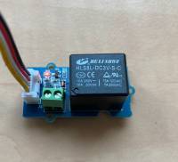 A Relay HLS8L-DC5V-S-C with a coil voltage(primary voltage) of 5V was used as an electrical switch to control when the pump turns on and off as the water pump has a higher voltage than the ESP32. The relay module acts like a bridge inbetween the water pump and the ESP32.