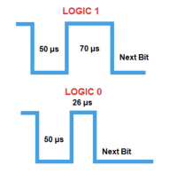 - Logic 1 is a 48 to 55 microsecond LOW pulse followed by a 68 to 75 microsecond HIGH pulse.