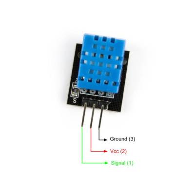 | Figure 1 DHT-11 Temperature and Humidity Sensor and pins. Source:https://www.adafruit.com/product/386 |