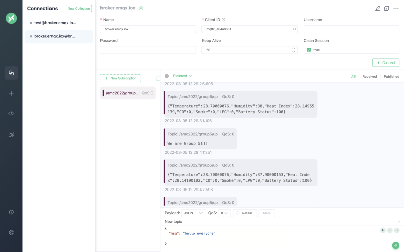 figure 2 Publish and subscription on MQTTX