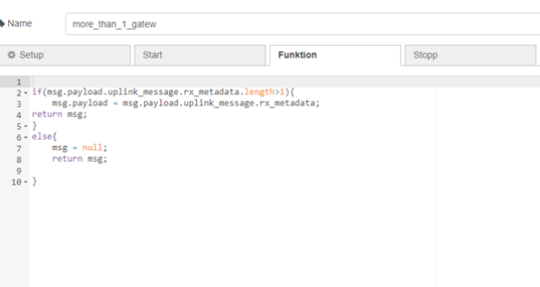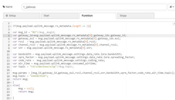 The simplest case is that a message is only received from one gateway. In this case the function “1_gateway” contains all gateway and connection data.