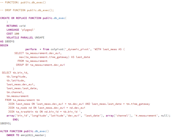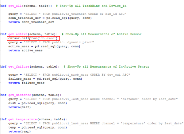 Dash Plotly had to be adapted as well. Every time the map is updated for the latest readings, the function must also be called to create a new table and view. In our case it is the function 'db_exec'.