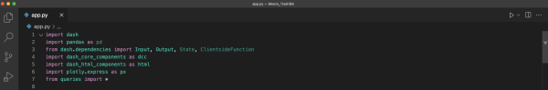 Finally, remember that Dash is built on top of Flask, so the webserver needs to be running just like Flask for us to view our visualization. We also set debug to true so no fresh server is needed every time we modify the visualization.