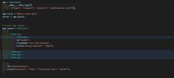 Dash apps use callback functions to update the properties of another component when an input property changes. In-Dash, any “output” can have multiple “input” components. And in our example, we are going to use multiple-input call back functions for example we had one callback function that take two inputs (intervals and data_type) and display one output as a graph output of what we have done for the trash bins measurements in Moers as you will see below in the below following figures.