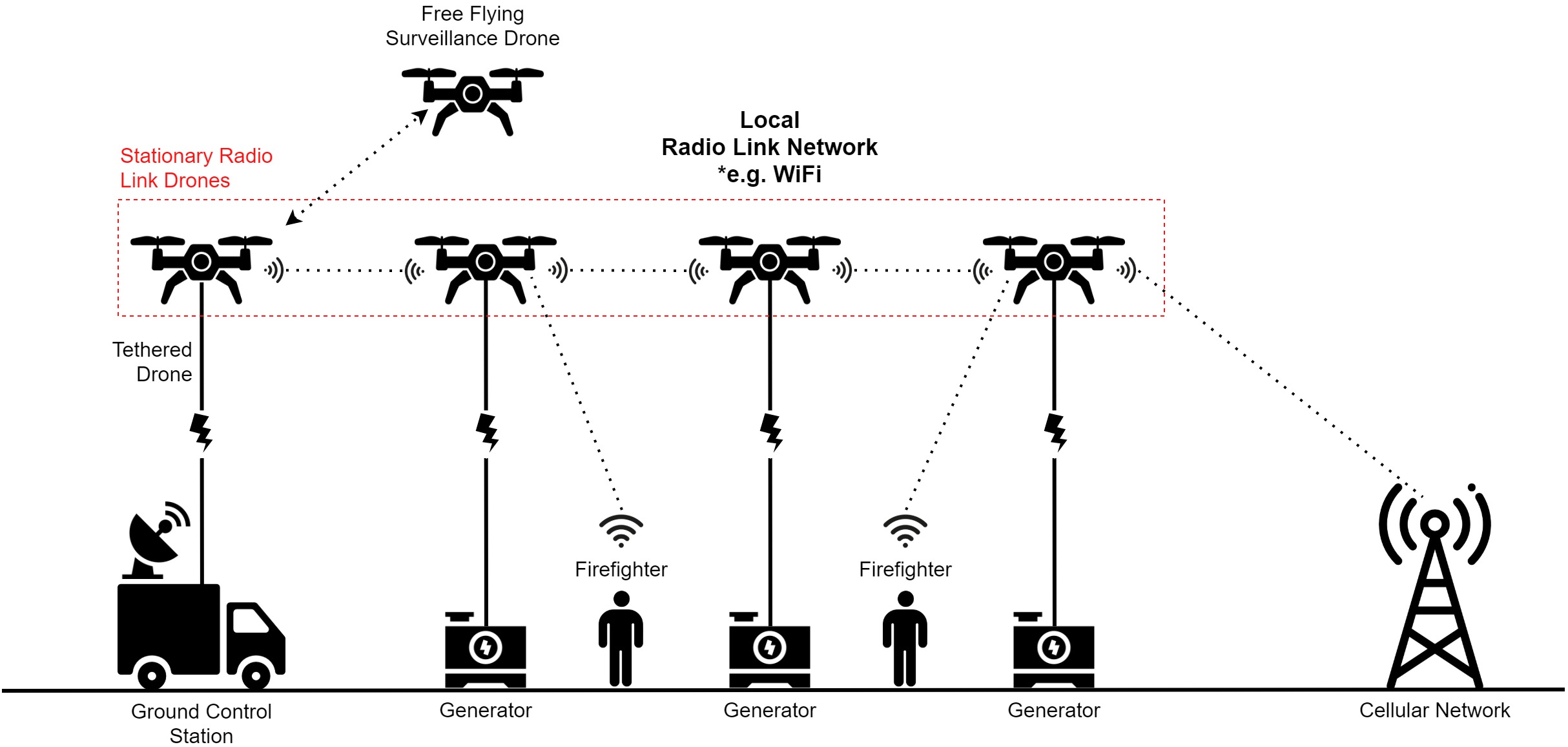 | Tethered Communication Drone (2023-02-28) at the Green FabLab of HSRW Kamp-Lintfort. |