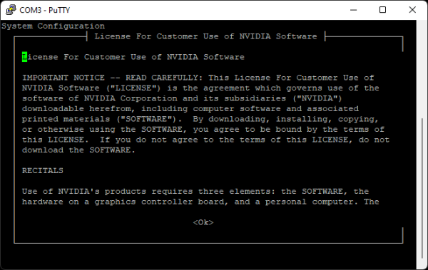 To complete setup when no display is attached to the developer kit, you’ll need to connect the developer kit to another computer and then communicate with it via a terminal application (e.g., PuTTY) to handle the USB serial communication on that other computer.