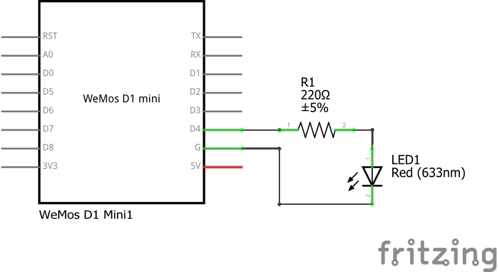 Fig. 2: ESP8266 with Blink Demo - Schematic