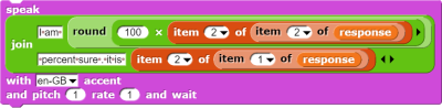 Inside analyze block we compare the class name with preset class names of food, that our pets consume, and broadcast to them. In case if the detected object is not suitable for any of them, we run speak block to pronounce the name of the object.